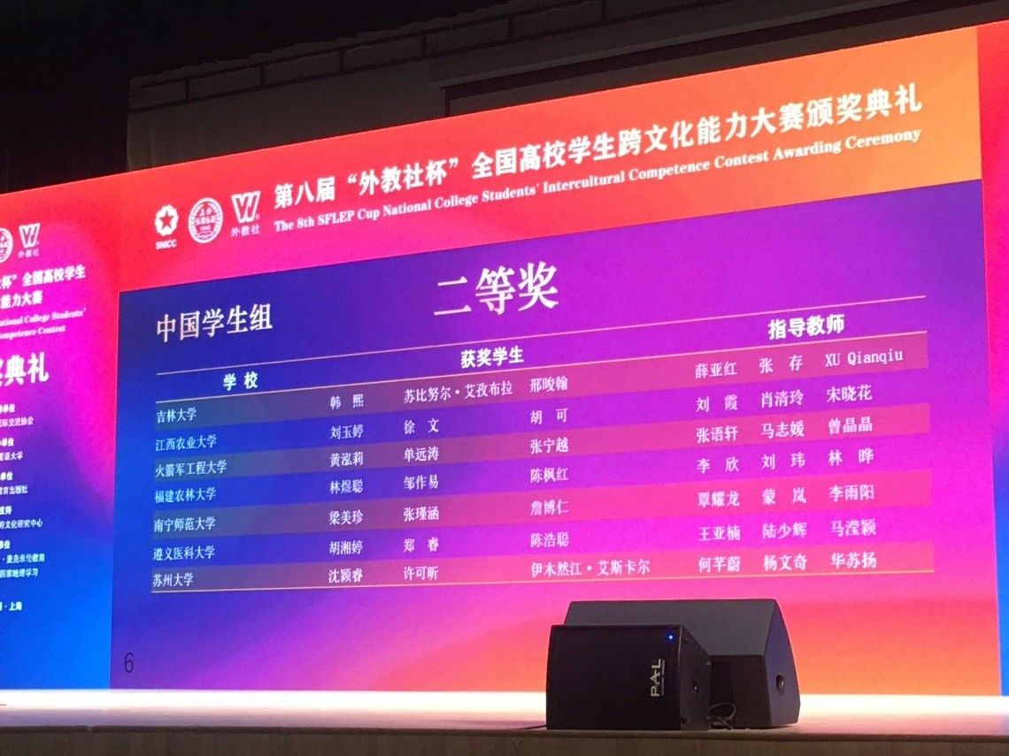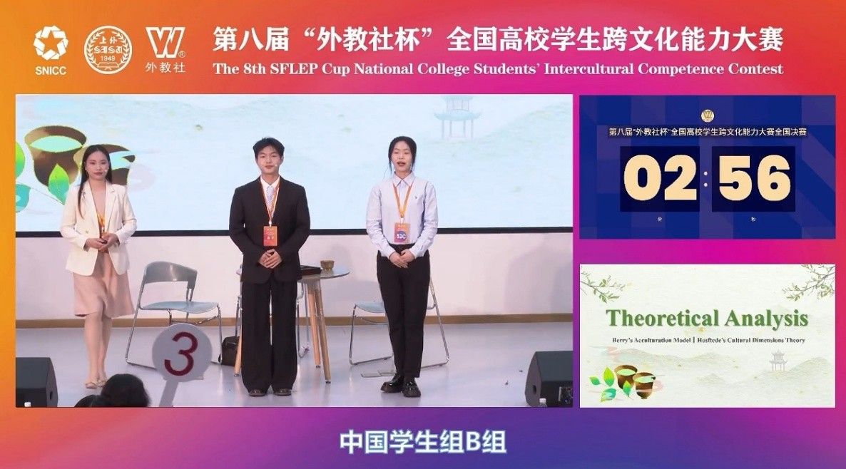 12月11日至14日,第八届“外教社杯”全国高校学生跨文化能力大赛全国决赛总决赛在上海外国语大学成功举办并全程线上直播。本次大赛竞争激烈,共有来自全国高校的76支中国学生组队伍同台角逐。我校代表队由情色动漫学科教学(英语)专业梁美珍同学、地理科学与规划学院大气科学专业詹博仁同学和美术与设计学院美术学专业张瑾涵同学组成,在情色动漫覃耀龙老师、蒙岚老师、李雨阳老师共同指导下,凭借沉稳的台风、扎实的功底与出色的临场发挥,最终荣获全国总决赛中国学生组二等奖,指导教师团队荣获大赛二等奖。