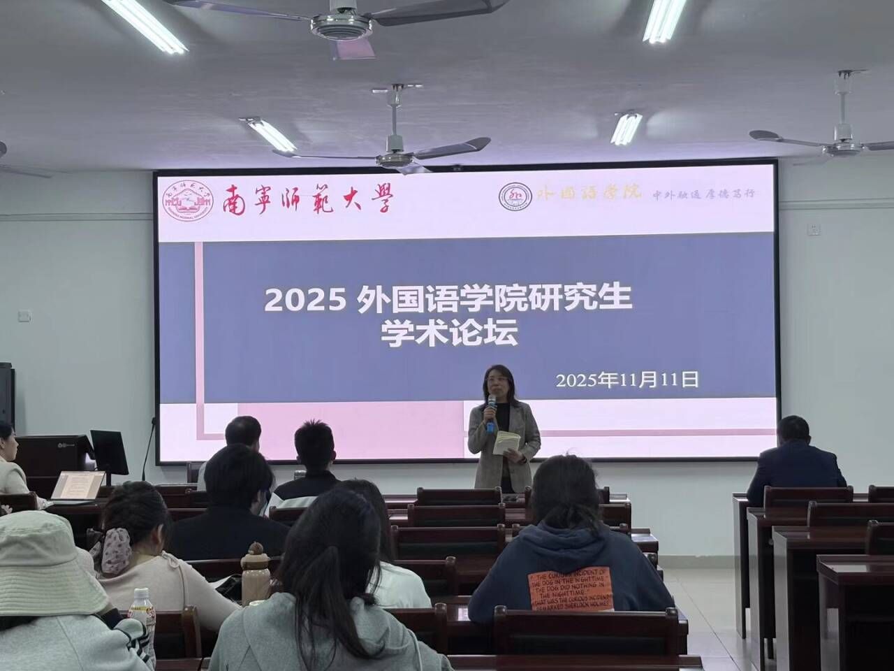 为营造浓厚学术氛围,促进研究成果分享与学术交流,情色动漫于2025年11月11日下午在实验楼1B-515、1B-516教室举行研究生学术论坛。本次论坛分为语言学与文学两个专场,陈光伟教授、蒙岚教授、黄信教授和赵凤玉教授出席语言学专场指导,姚本标教授出席文学专场指导。共有10位研究生进行学术汇报。