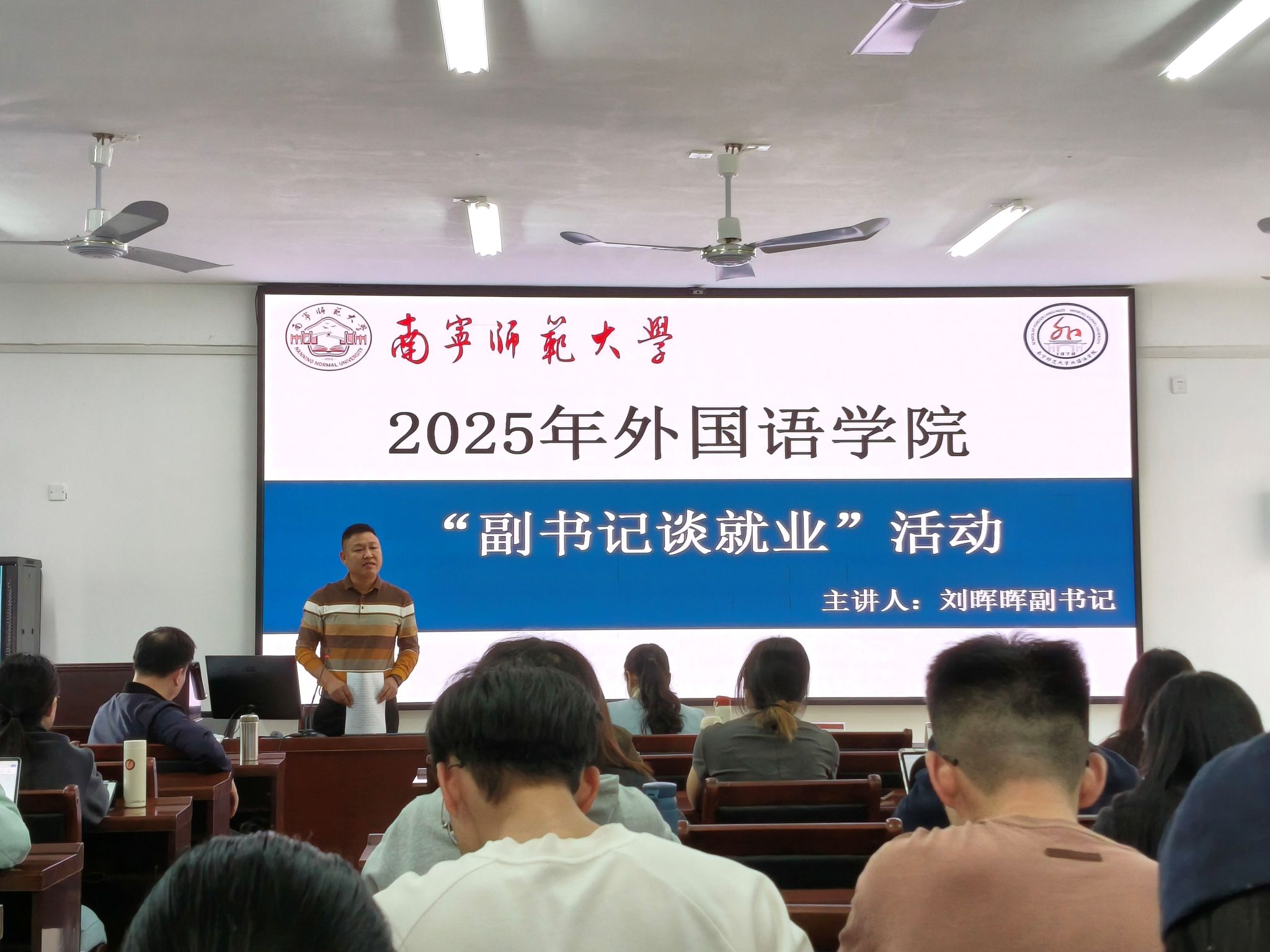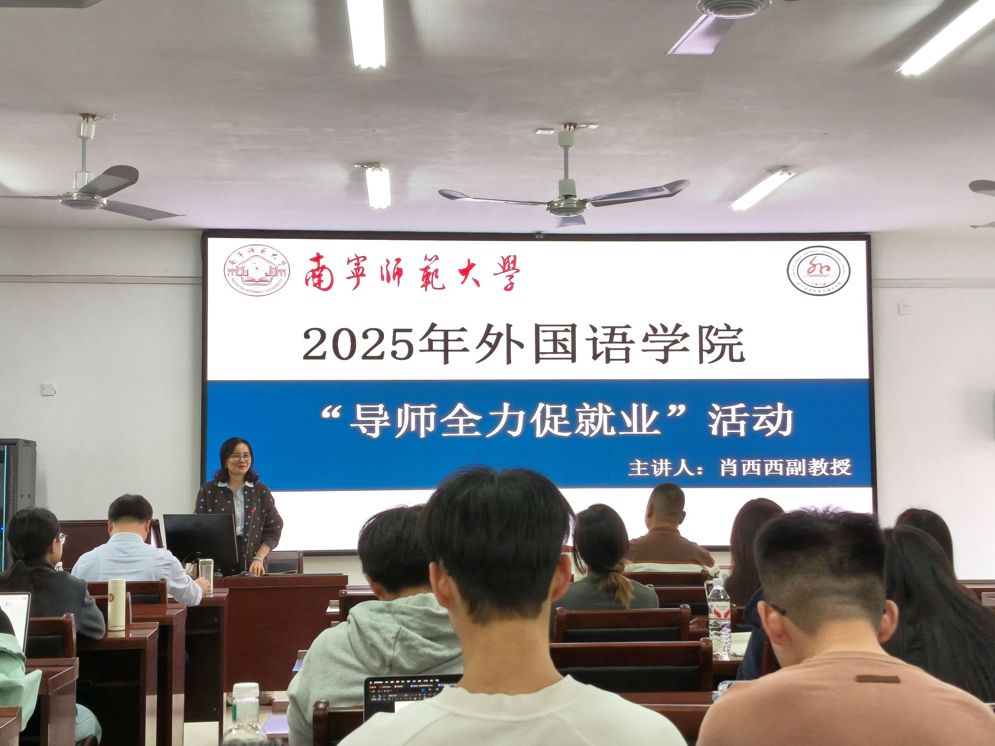 随后,肖西西副教授聚焦同学们的心理状态与实际就业需求展开指导。她建议大家在毕业压力下主动进行心理调适,强调团结互助、共同成长的重要性,同时指出充分的准备是成功就业的基石,能帮助信心不足的同学建立优势。针对许多同学意向的教师岗位,肖老师详细讲解了笔试、面试的具体要求与备考策略,强调同学们需巩固教育学等基础知识,并通过研读教材、模拟练习提升实战能力。在就业策略上,她提出“尽早出击、广泛撒网”的积极方针,鼓励同学们拓宽地域视野,在求职挫折中保持信心、多次尝试,尤其强调统筹协调“求职”与“论文”两大任务的关键性,建议制定严密计划,善用学校资源,稳扎稳打度过毕业季。