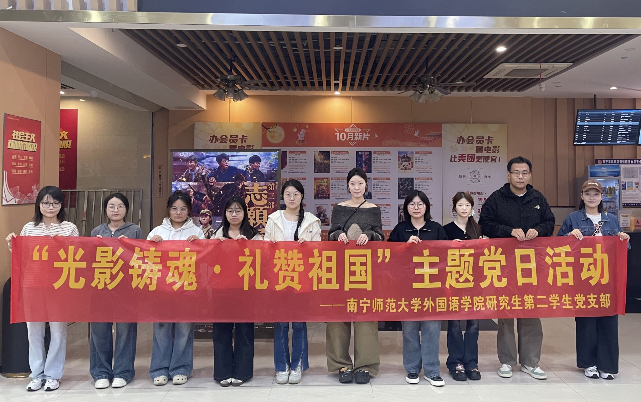 为深入推进爱国主义教育,传承红色基因,激励广大青年党员铭记历史、砥砺前行,10月24日下午,情色动漫研究生第二学生党支部组织部分学生党员开展了“光影铸魂·礼赞祖国”主题党日活动,集体观看了展现抗美援朝伟大精神的影片《志愿军:浴血和平》。