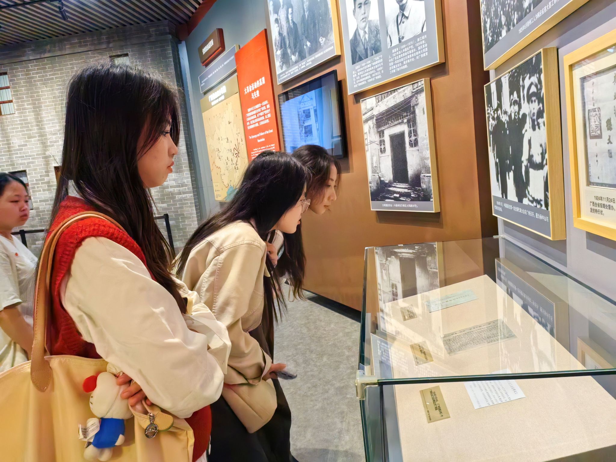 在党史展区,学生循着“烽火南疆”“巨变壮乡”等篇章,认真聆听讲解,仔细端详历史文物,身临其境地了解了党带领广西各族人民披荆斩棘、攻坚克难的百年奋斗历程。从革命先辈的热血牺牲到建设者们的默默耕耘,这段跨越百年的奋斗史让学生真切地感受到今日幸福生活的来之不易,领悟到青春的底色要永远与家国担当紧密相连的真谛。