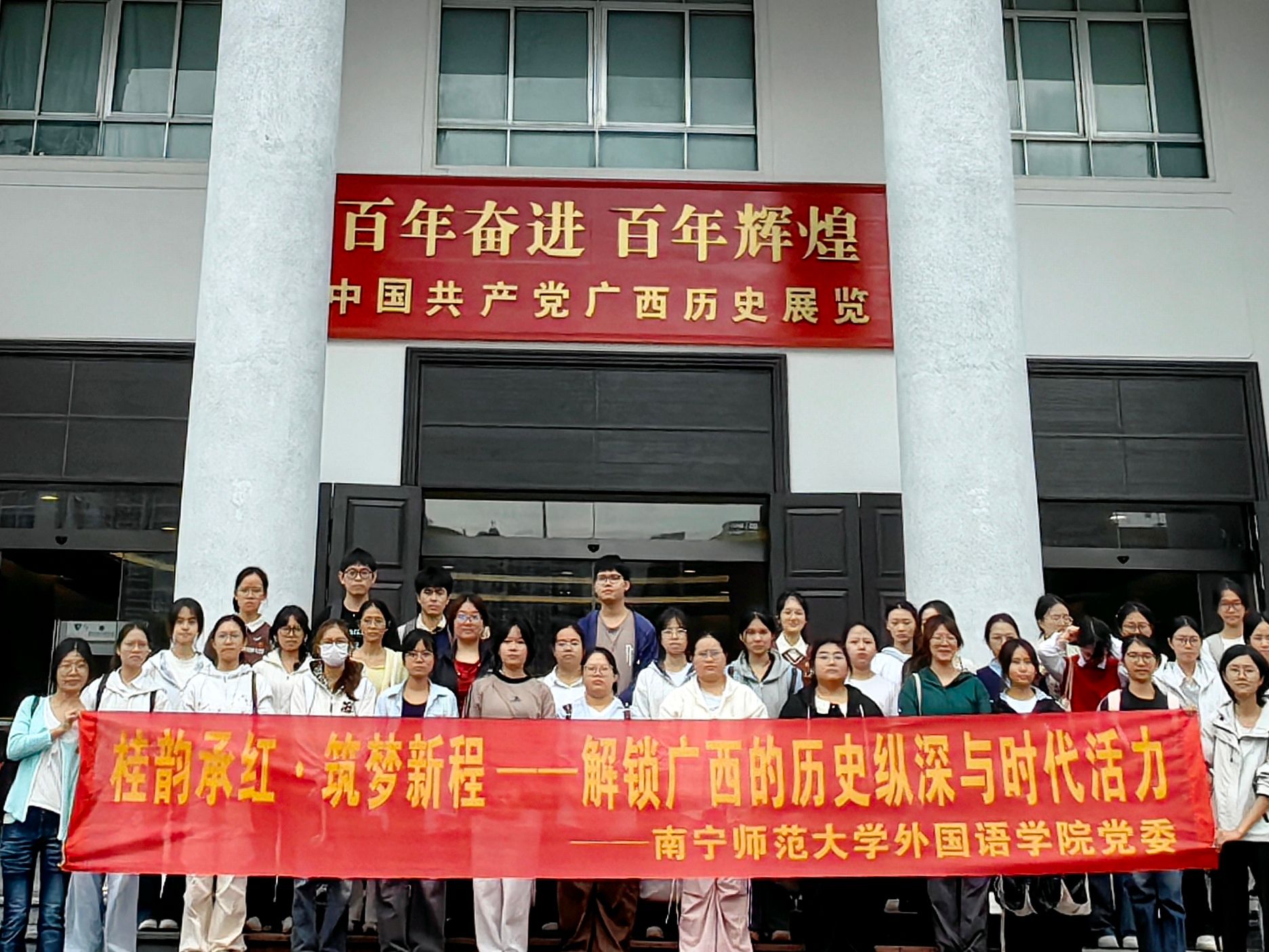为深化对党的百年征程与广西发展史诗的认知,情色动漫党委组织第67期入党积极分子于11月9日上午赴广西展览馆开展“桂韵承红·筑梦新程——解锁广西的历史纵深与时代活力”主题实践活动。本次活动共有28名入党积极分子参与。