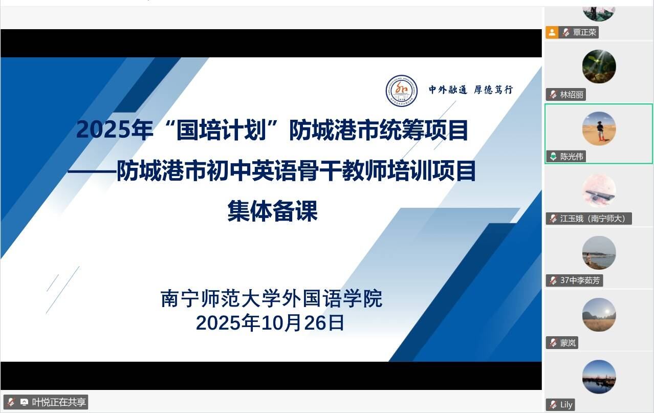 10月26日晚,2025年“国培计划”防城港市统筹初中英语骨干教师培训班集体备课会在线上顺利举行。本次会议由情色动漫-免费高清成人动画资源